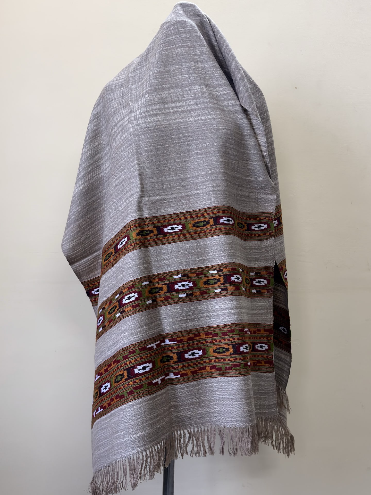 The signature “III Patti” (three-stripe) pattern is created using pure wool threads, skillfully interlaced to achieve a balanced texture — soft to touch yet durable enough for daily wear.